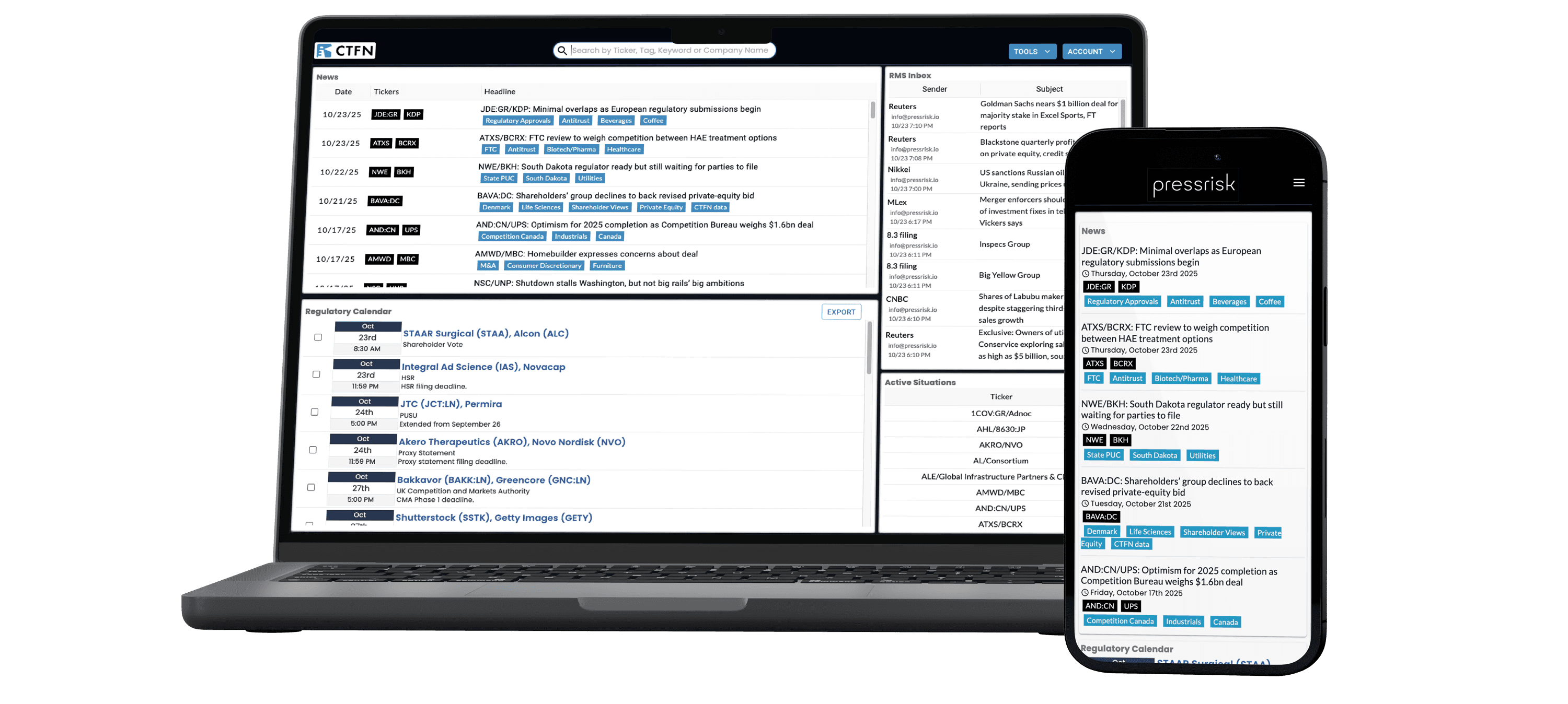 Regulatory calendars, active-situations summaries, pre-event lists and PUSU monitors.